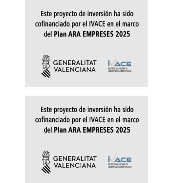 Este proyecto de inversión ha sido cofinanciado por el IVACE en el marco del Plan ARA EMPRESES 2025 como respuesta a los graves daños ocasionados por la DANA que afectó a la provincia de Valencia en octubre de 2024.